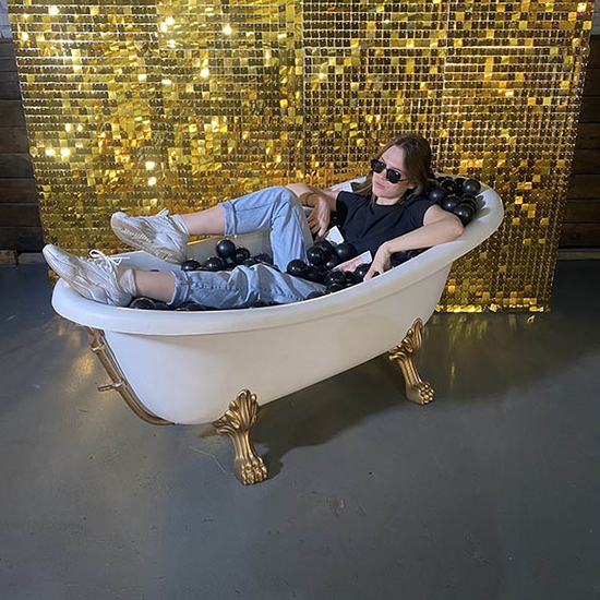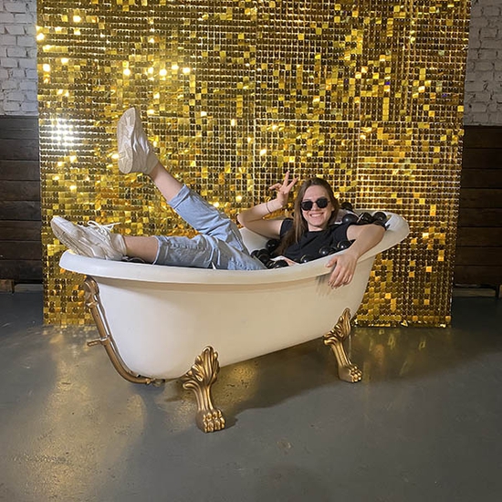Это был очень яркий и по-настоящему золотой день! Фотозона из золотых пайеток отлично подойдет при оформлении вечеринок в стиле Оскар и Гетсби, юбилеев и даже выпускных вечеров. Идеальная локация для стильного мероприятия. Гости в вечерних платьях и костюмах будут смотреться великолепно на золотом фоне. Такие фотографии они обязательно запомнят и будут пересматривать с удовольствием.