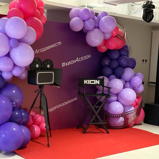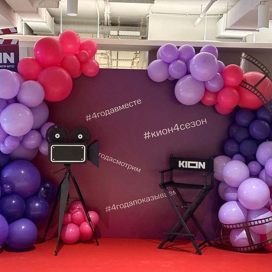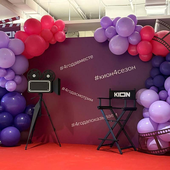 Известная мультимедийная онлайн-платформа праздновала четвертую годовщину с момента основания, а мы подготовили для них кино-фотозону в честь важного события! Фотозона украшена тематических баннером с хэштегами, а также разноцветными воздушными шарами и декоративными элементами съемочного процесса.