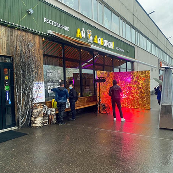 АйДаБаран пригласил гостей отпраздновать юбилей своего ресторанчика и пофотографироваться на угловой фотозоне из золотистых пайеток