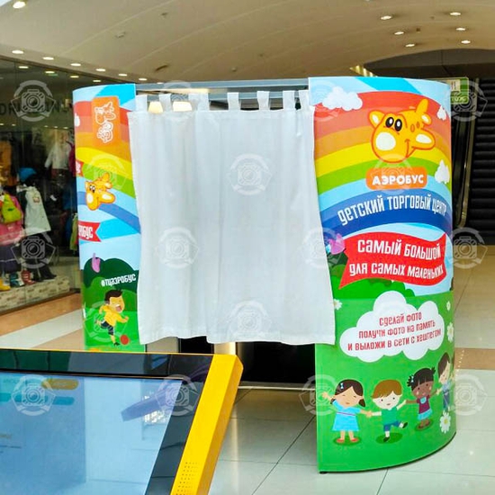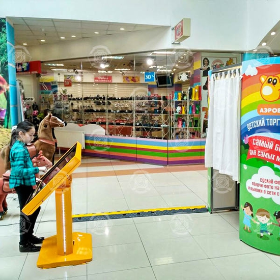 Оформленная в тематике детского торгового центра Аэробус, фотобудка порадовала маленьких гостей яркими снимками и весёлым реквизитом для фото. Мероприятие было посвящено полноценному открытию и рекламной компании ТЦ. Положительные эмоции навсегда сохранились в альбомах всех посетителей московского гипермаркета.