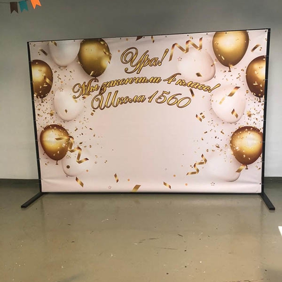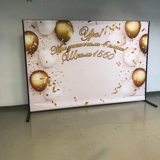 По любым вашим идеям и эскизам, любые размеры и цвета, все что нужно для качественного баннера, презентующего сегодняшний день. Именно для таких целей мы изготовим для вашего праздника красочный Пресс Волл, который станет отличным фоном для памятных снимков. Из наших недавних работ можно выделить огромный ажиотаж на выпускные!